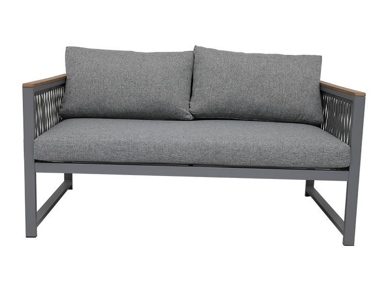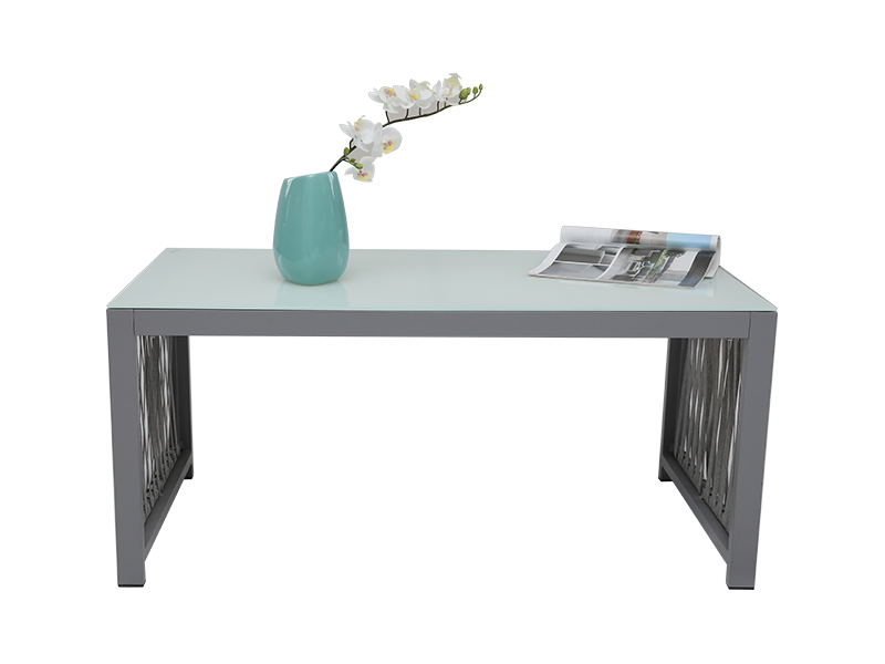 Meghatározás | alumínium keret kötélmel szövött, összesen 4db; Loveseat: L70*W132*H69CM, 1 PC Egyetlen szék: L70*W70*H69CM, 2PCS dohányzóasztal: L100*W50*H46cm, 5 mm edzett fehér üveg, 1dc |
