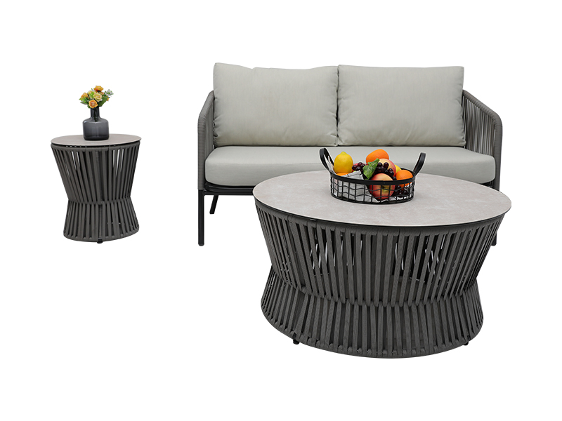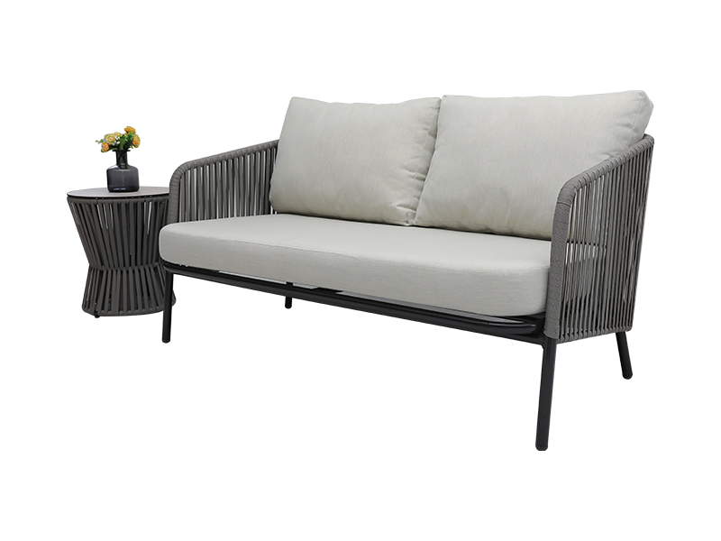 Meghatározás | alumínium keret sík kötélmel szövött, 10 cm -es üléspárna szivaccsal, hátsó párnával, rost töltelékkel, 230G/m2 poliészter párna szövet; Egyetlen szék: L82*W75*H69CM, 2db; Loveseat szék: L82*W142*H69CM, 1 PC; Dohányzóasztal: ∮85*H43cm, 6 mm -es üveg kerámia alapján; Oldalsó táblázat: ∮42*H48cm, 6 mm -es üveg a kerámia alapján |