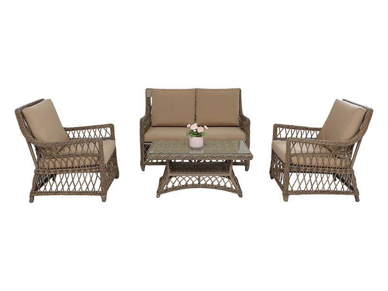 Nagy szilárdságú, kerek pe rattan szövött por bevont alumínium Keret, hogy ellenálljon minden Az időjárási körülmények, és állandó és kényelmes ülő élményt nyújtanak a szabadtéri életben.