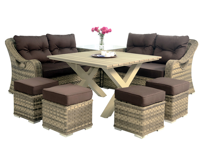Nagy szilárdságú Pe rattan szövött por bevont alumínium Keret, hogy ellenálljon minden Az időjárási körülmények, és állandó és kényelmes ülő élményt nyújtanak a szabadtéri életben.